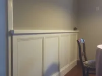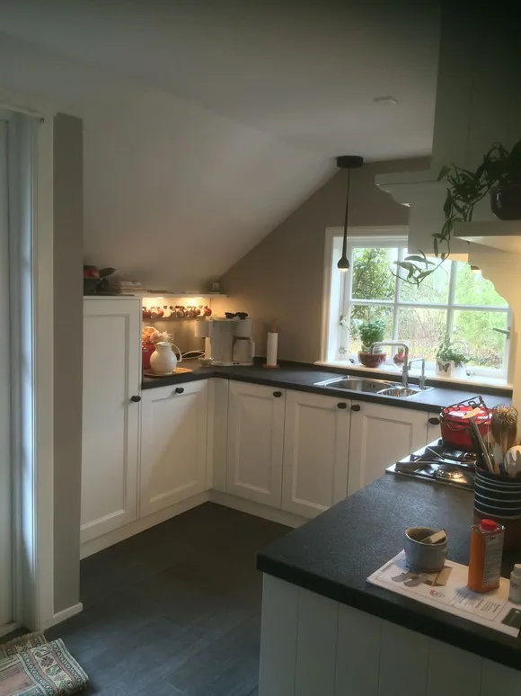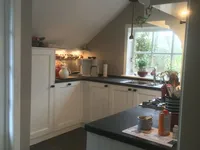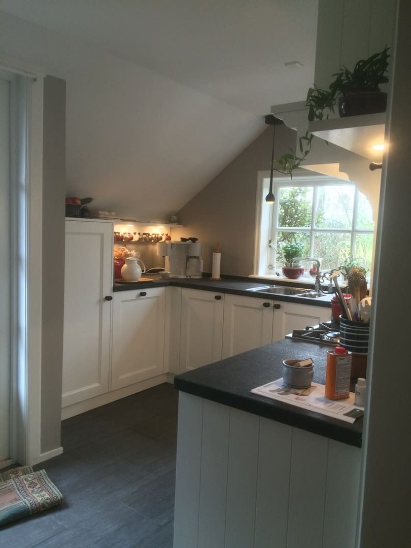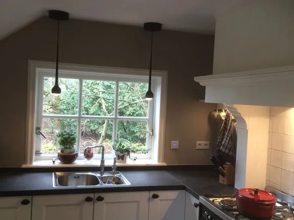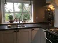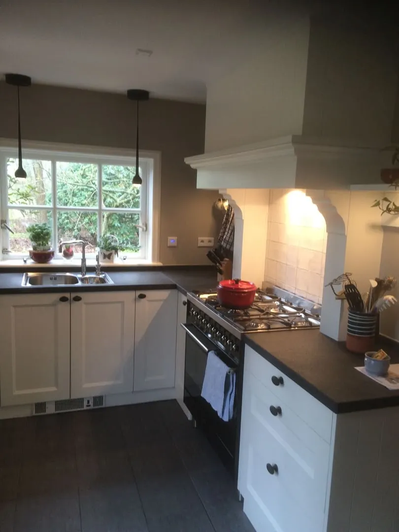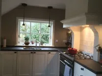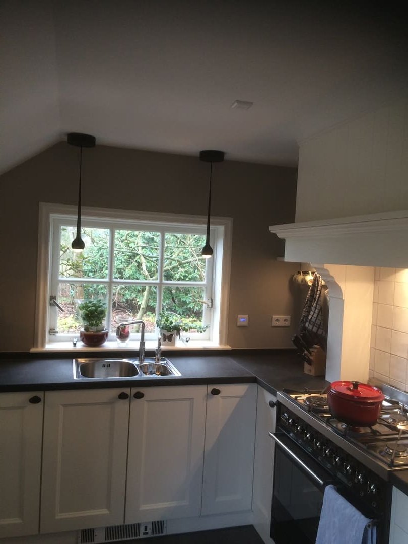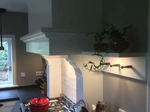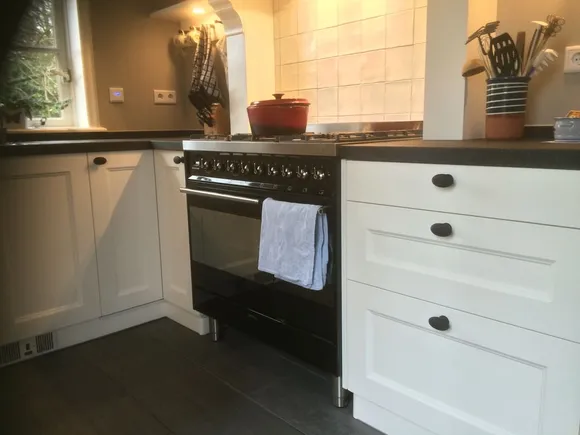 Familie Versluis had de specifieke wens om niets te hoeven ondernemen voor de nieuwe keuken. Om ze geheel te ontzorgen hebben we alle benodigde werkzaamheden voor hen verricht: Demontage, leidingwerk, stucwerk, tegelwerk, montage en het benodigde schilderwerk. Ook de in stijl van de keuken gemaakte lambrisering in de naastgelegen eetkamer is in onze eigen werkplaats gemaakt.